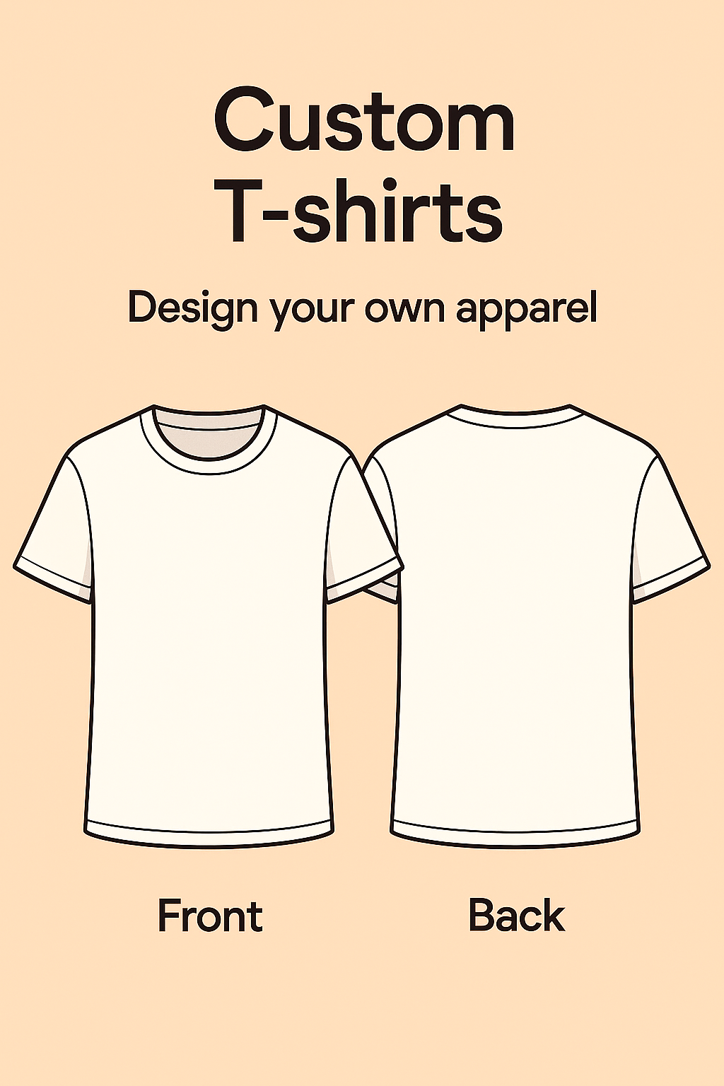 Simple graphic showcasing a customizable t-shirt template with front and back views, ideal for apparel design presentations and marketing.
