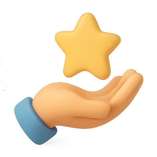 A colorful 3D illustration depicting a stylized hand holding a star, ideal for use in digital communications, social media, or motivational content.