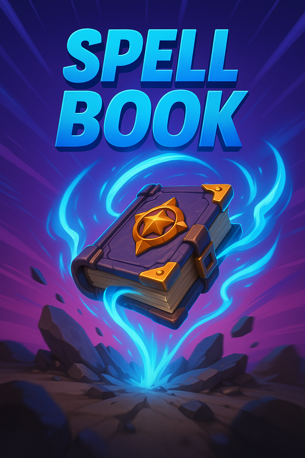 Dynamic Spell Book Design with Vibrant Colors and Depth