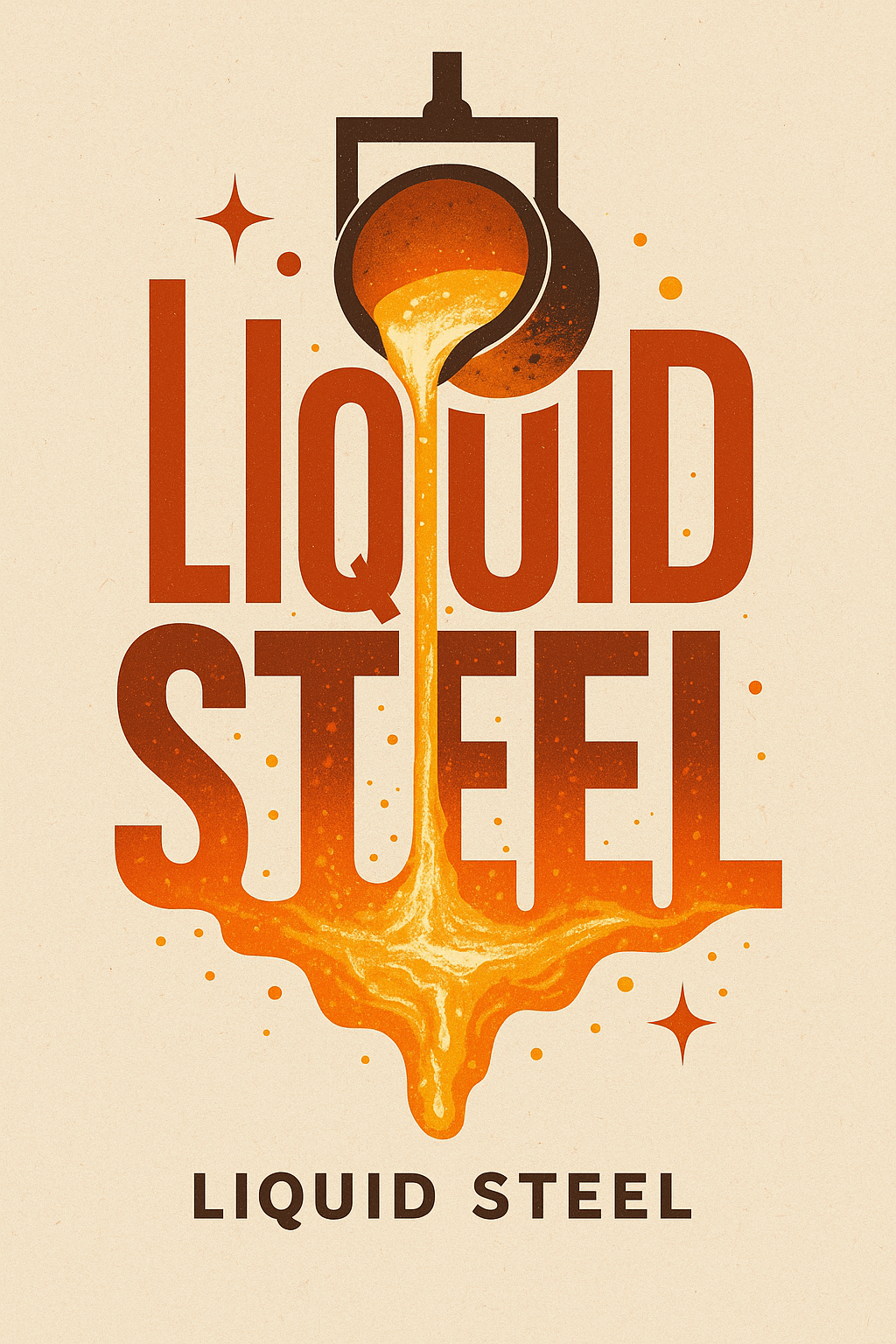 A vibrant graphic design featuring the concept of liquid steel, with bold typography and warm color palette. Ideal for industrial branding or promotional materials.