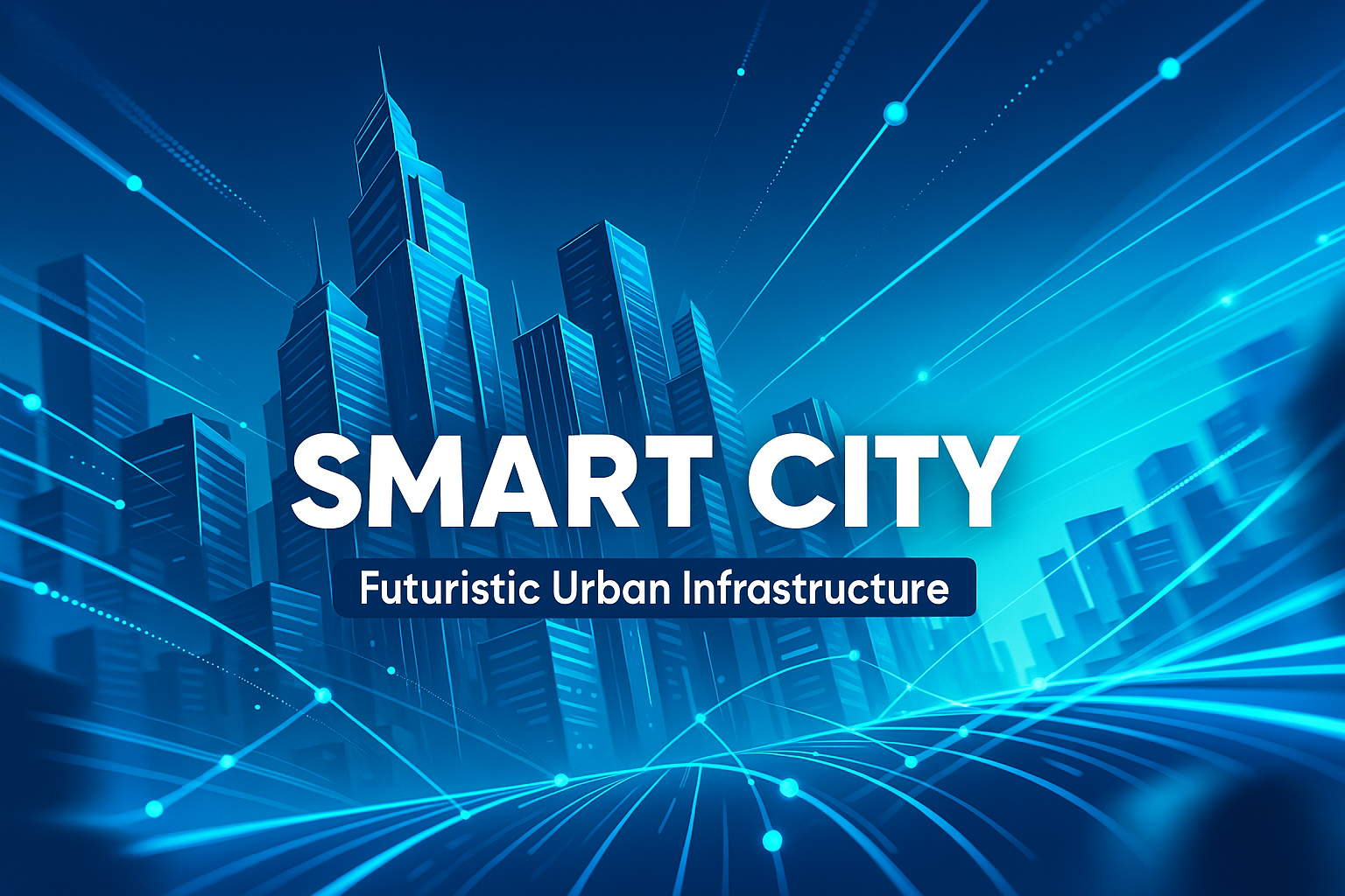 Futuristic Smart City Digital Background with Urban Infrastructure