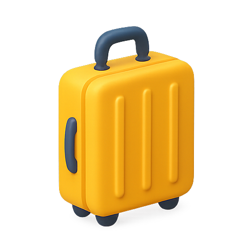A vibrant 3D render of a yellow suitcase featuring a textured surface and wheels, suitable for travel-related themes or marketing materials.