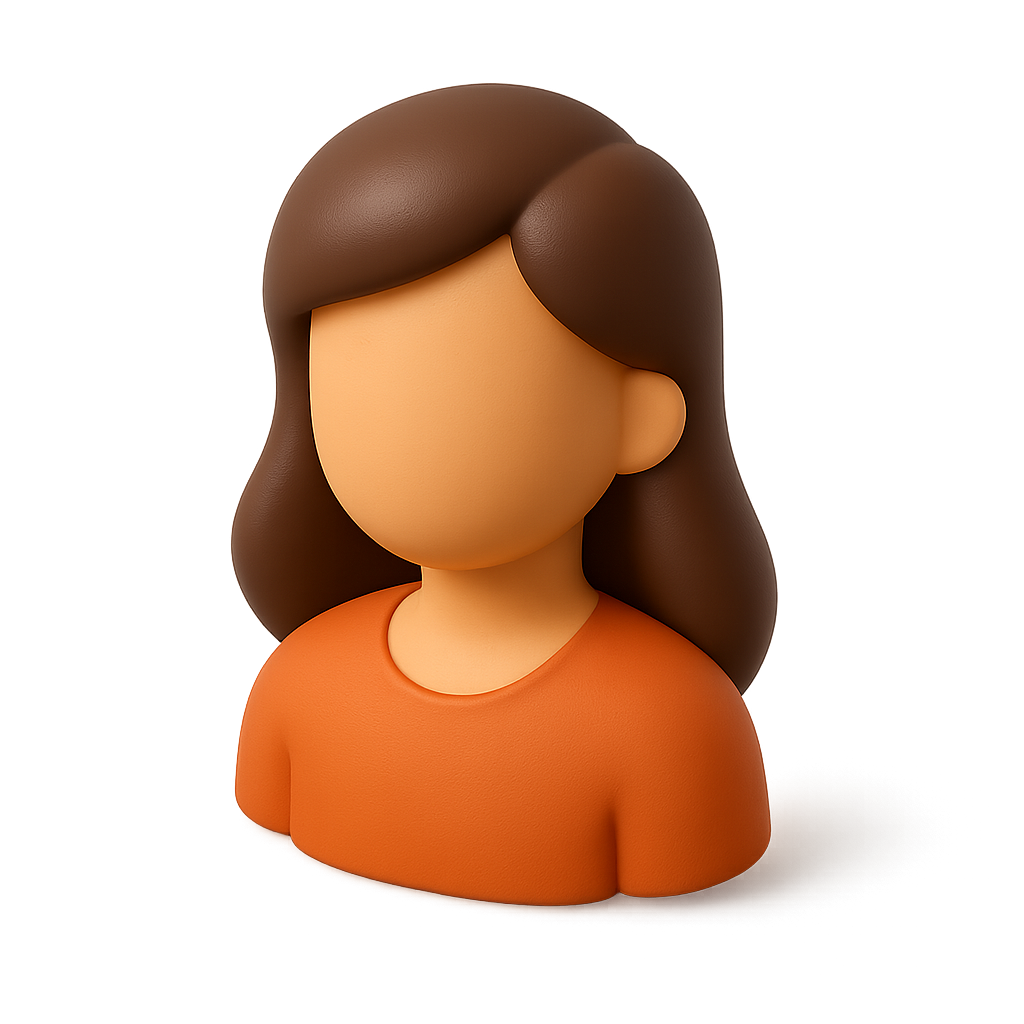 /Collection: /by davooda/Type: PNG/A 3D isometric icon depicting a faceless character with brown hair, wearing an orange shirt. The design features a volumetric feel and a transparent background.