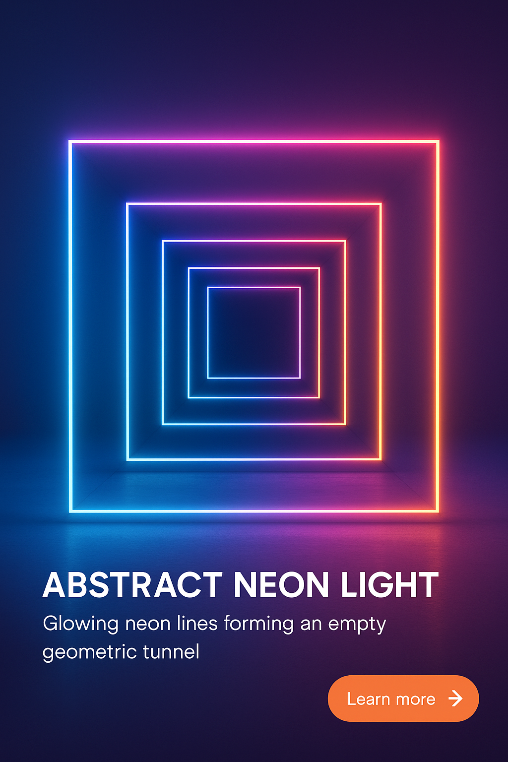 /Collection: /by davooda/Type: PNG/A vibrant abstract illustration featuring glowing neon lines forming a geometric tunnel. The design captures an empty, futuristic stage with colorful rectangular laser lines, creating an atmospheric setting.