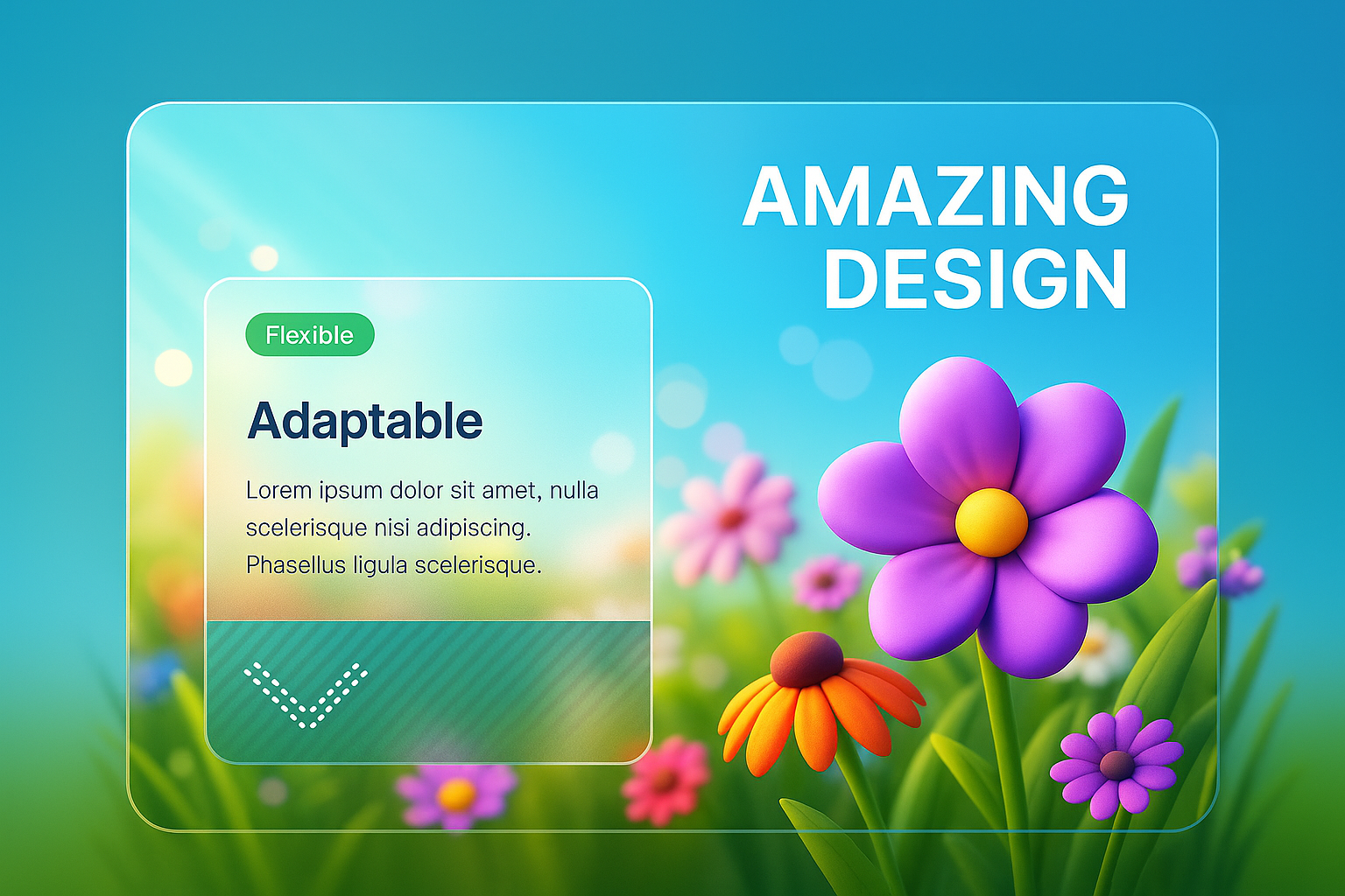 /Collection: /by davooda/Type: PNG/A vibrant summer flower meadow illuminated by sunbeams and soft bokeh lights. The scene features a transparent overlay with design elements, creating a modern greeting card concept.