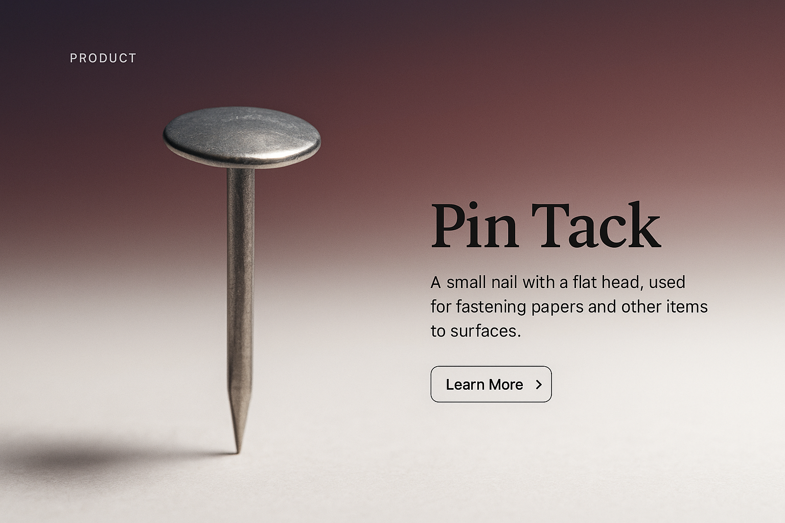 A modern web page design featuring a pin tack, with a gradient background and clear text elements, showcasing product details and an action button.