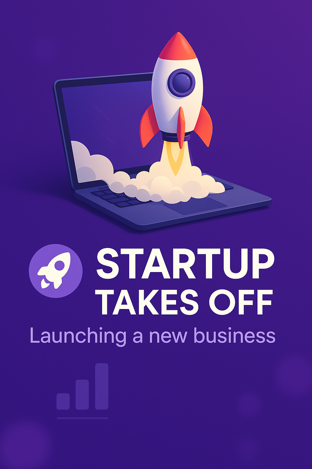 Creative Illustration of a Startup Launching with Rocket and Laptop