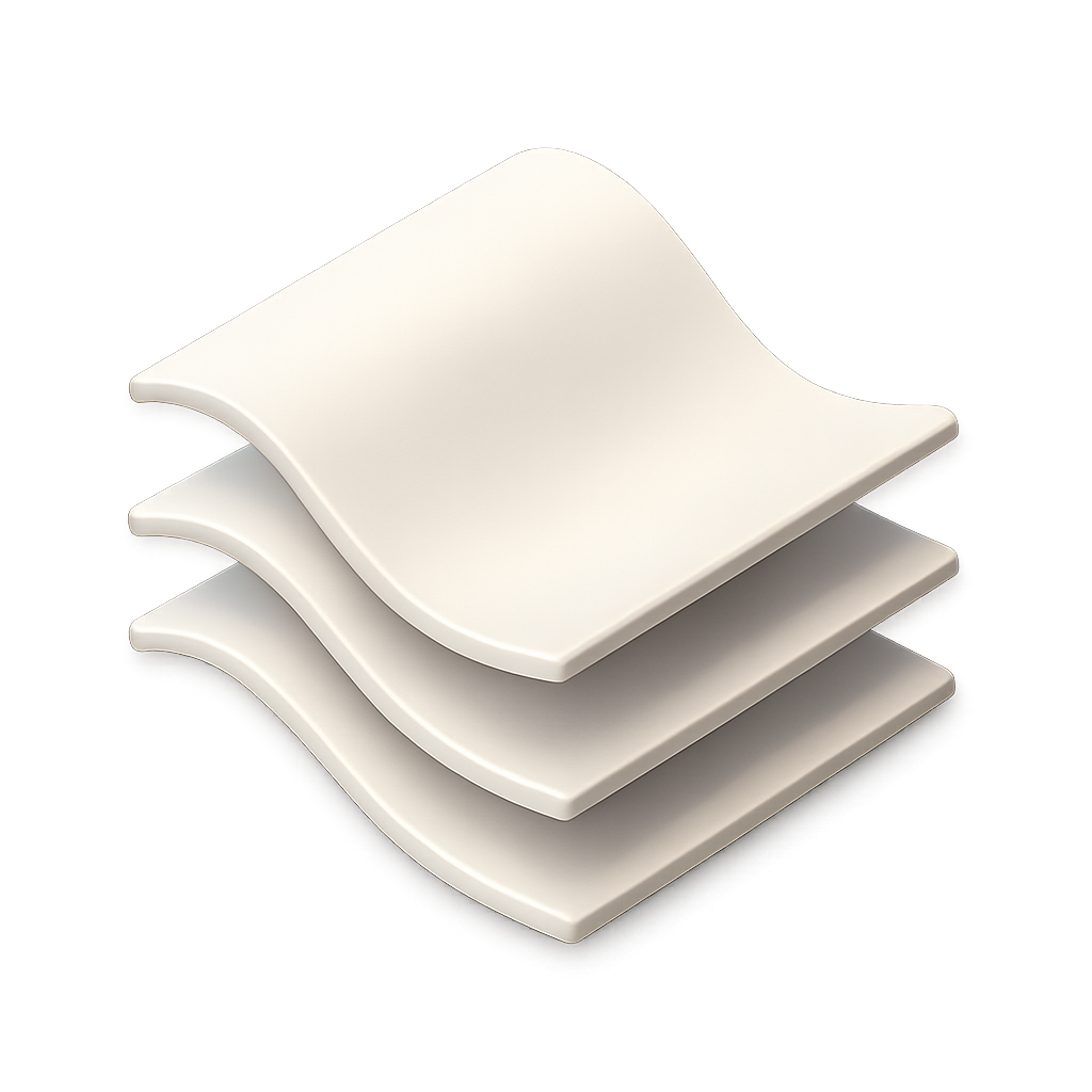 An artistic representation of three wavy sheets of paper, illustrated in a 3D isometric style. The icon features smooth curves and a volumetric effect against a subtle background.