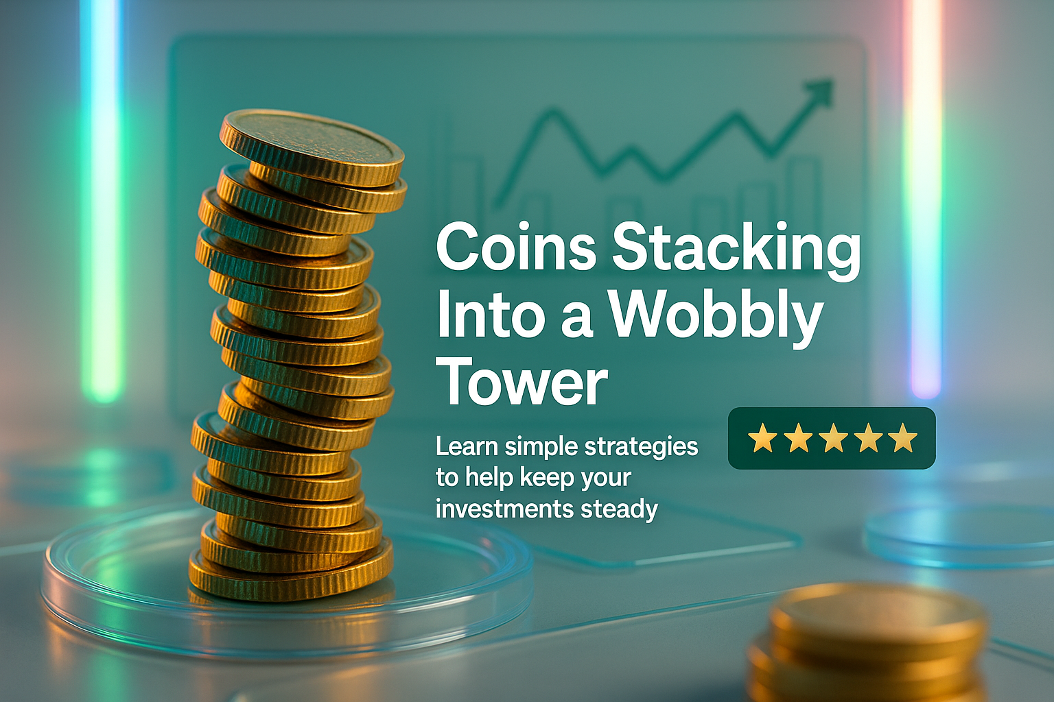/Collection: /by davooda/Type: PNG/A visually engaging 3D graphic depicting coins stacked into a wobbly tower, symbolizing investment strategies. Ideal for finance-related content and educational materials.
