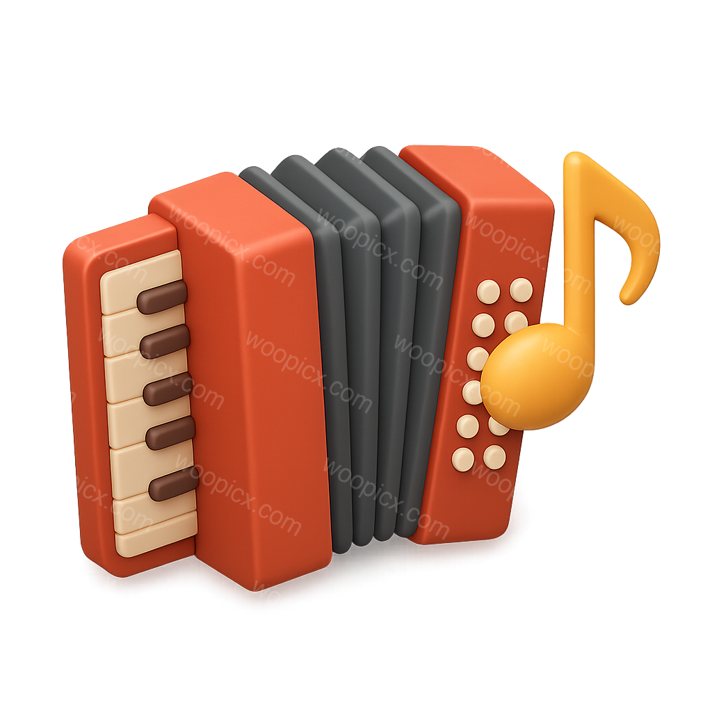A vibrant 3D rendering of an accordion featuring contrasting colors and a musical note, set against a smooth, gradient background, showcasing depth and detail.