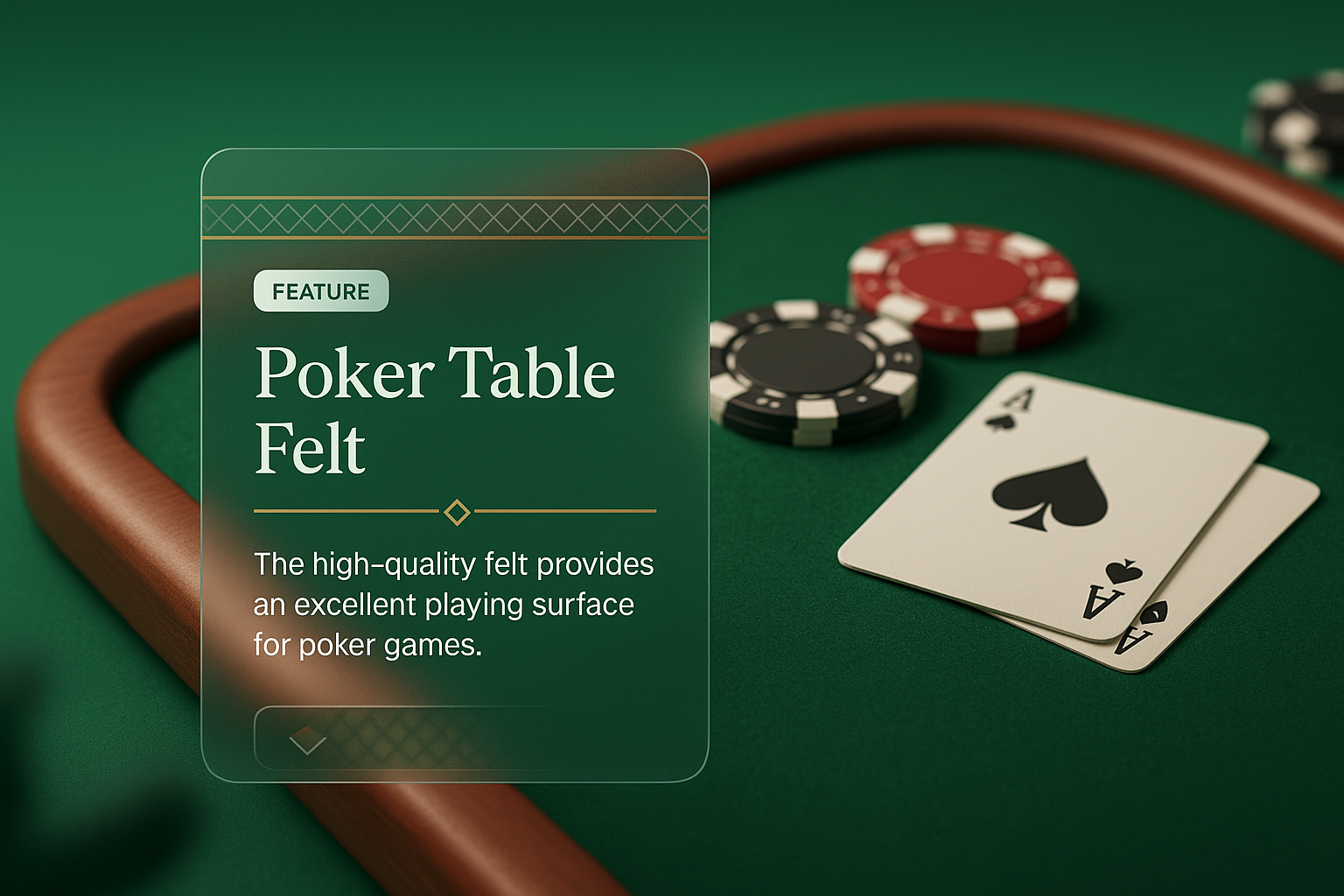 /Collection: /by davooda/Type: PNG/A detailed view of a poker table featuring high-quality felt. Includes cards and chips, with a transparent block showcasing the feature title and description.