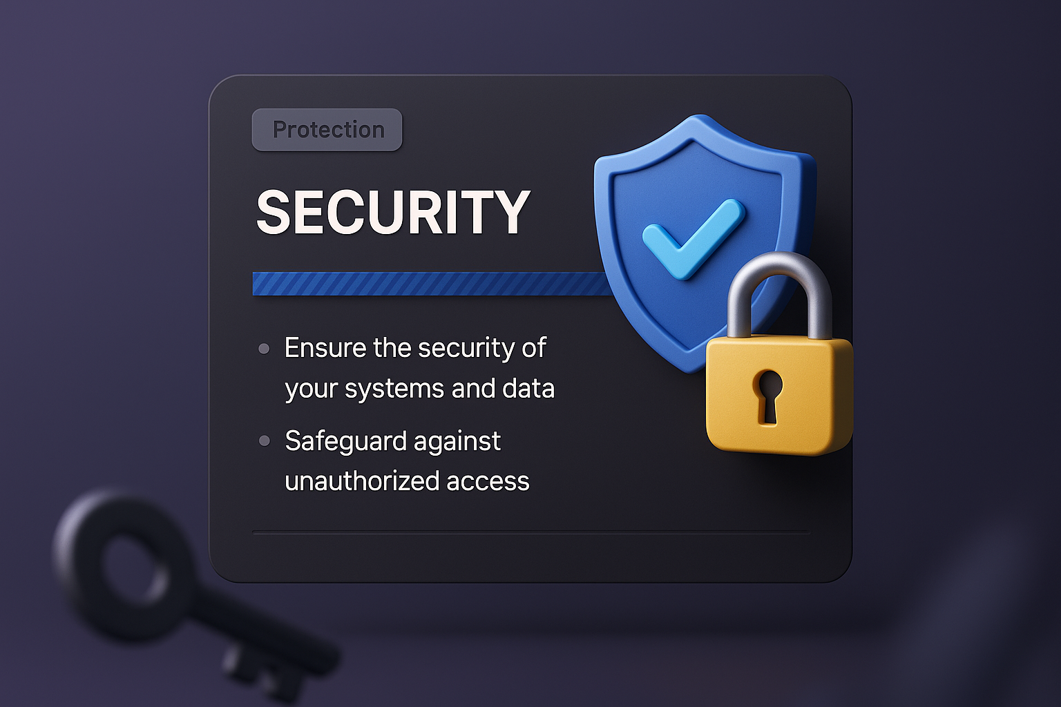 /Collection: /by davooda/Type: PNG/A 3D illustration depicting security themes. Features a shield, padlock, and text blocks integrated into a dark background with a smooth gradient. Emphasizes protection and data safety.