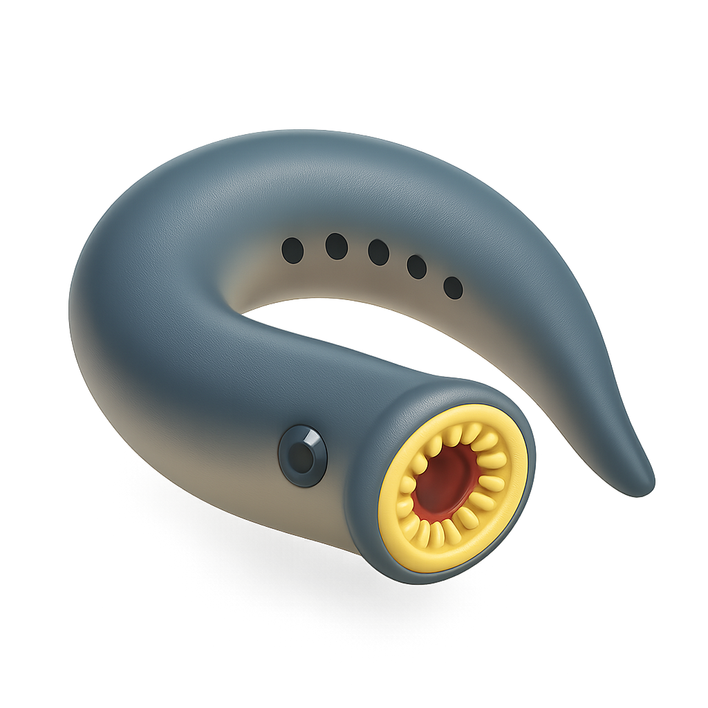 /Collection: /by davooda/Type: PNG/This image features a stylized 3D representation of a lamprey, showcasing its unique shape and parasitic features. The icon is designed with a three-quarter view and a transparent background, emphasizing its volumetric qualities.