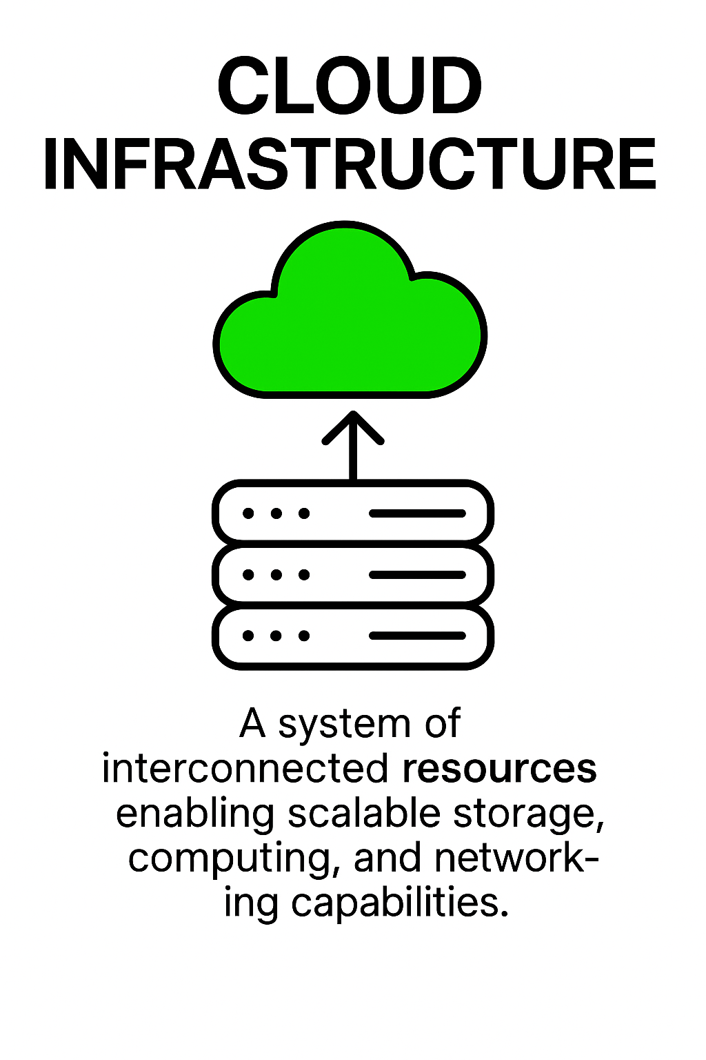 A minimalist graphic depicting cloud infrastructure with an illustrative cloud and server icons, ideal for tech-related content and educational materials.