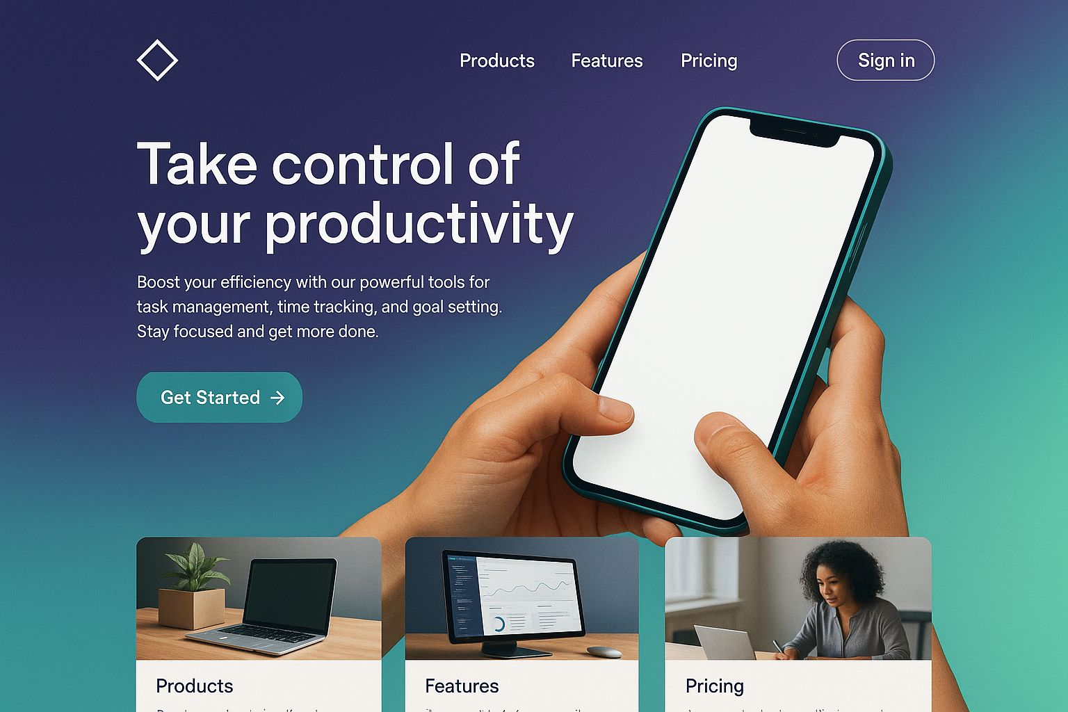 Futuristic Landing Page Featuring a Smartphone in Use