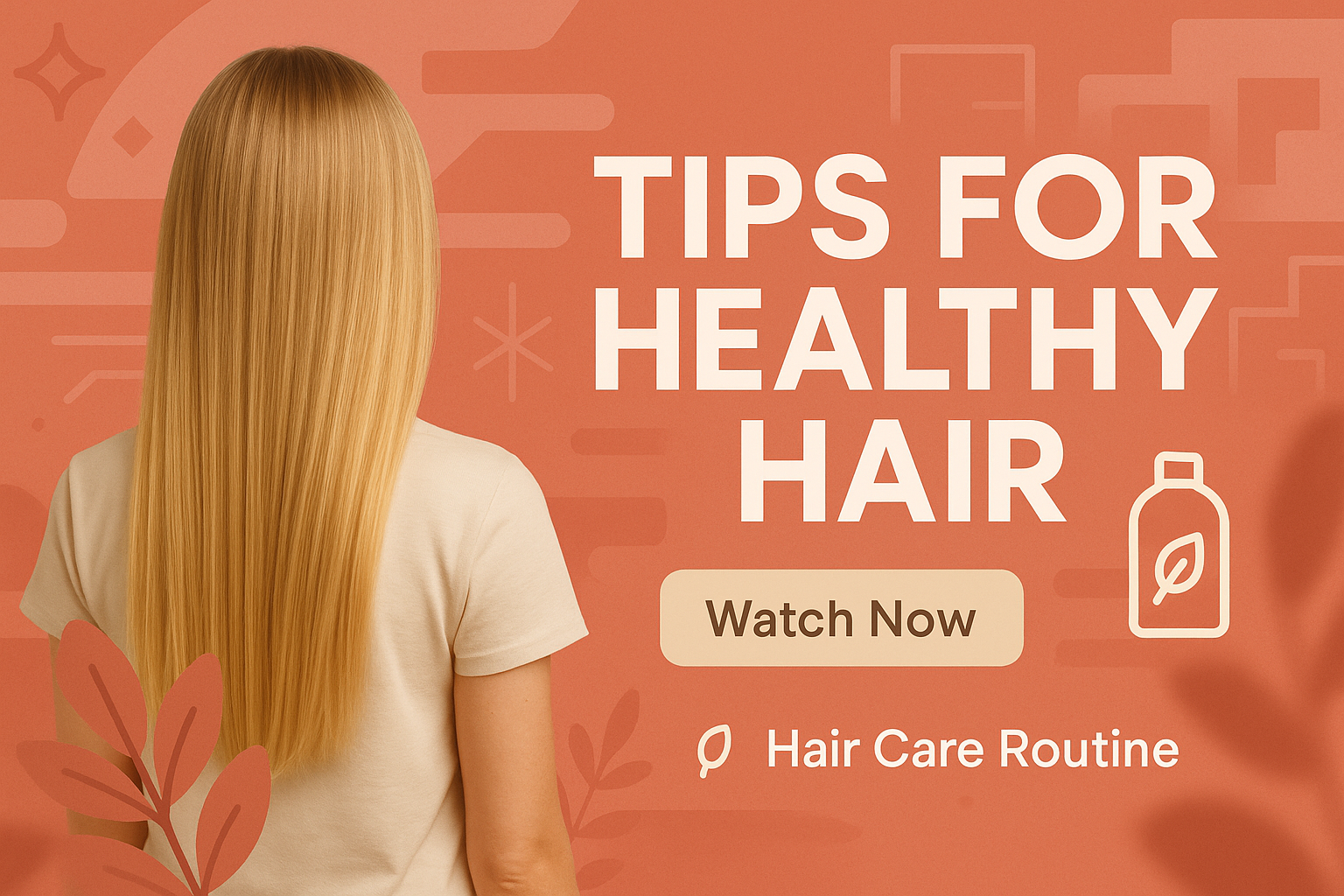 Visually appealing banner promoting healthy hair tips, featuring a soft color palette and modern design elements, ideal for beauty and wellness marketing.