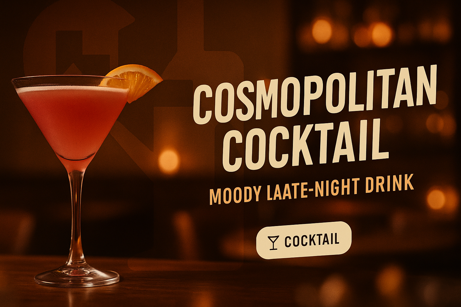Elegant Cocktail Promotion Graphic Featuring Cosmopolitan