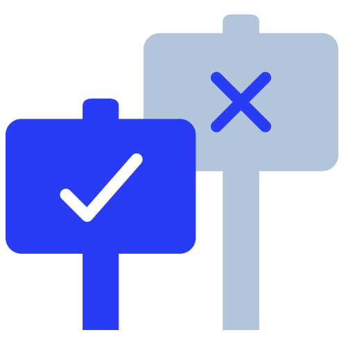 polish-blue simple icon: opinions, yes no, checkmark, cross, accept