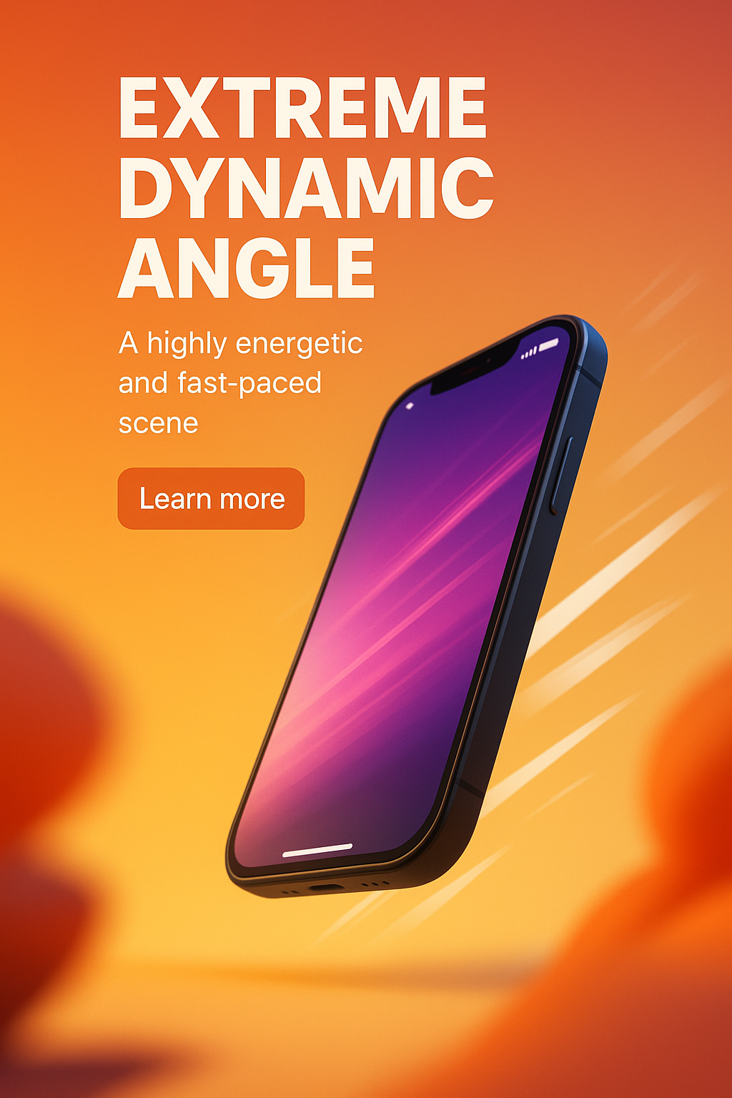 /Collection: /by davooda/Type: PNG/This is a promotional graphic featuring a smartphone at an extreme dynamic angle, emphasizing speed and energy. The vibrant background enhances the modern tech appeal, targeting tech-savvy consumers.