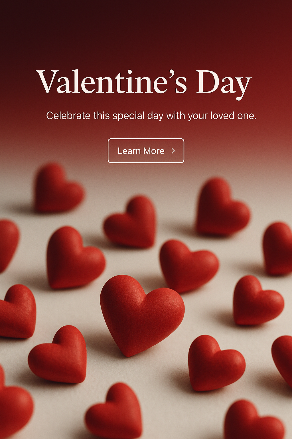 A visually appealing Valentine's Day background featuring scattered red hearts on a soft gradient backdrop. Ideal for web design with a clean layout and readable text.