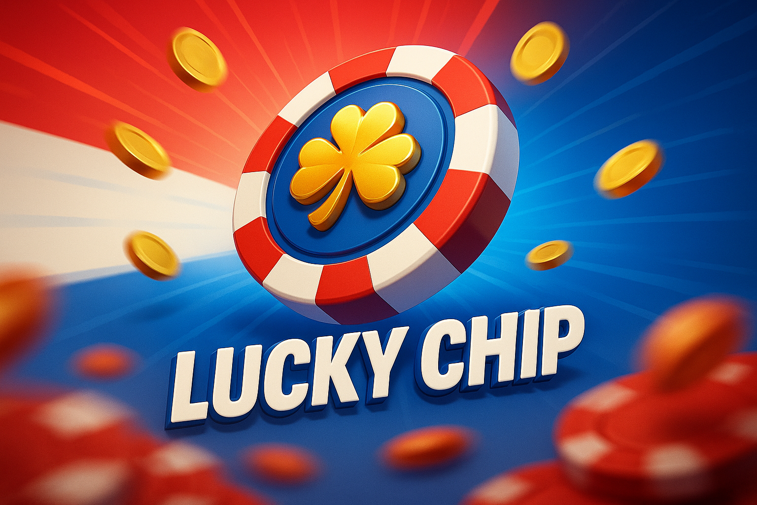 This vibrant image showcases a 3D illustration of a lucky chip with a dynamic background. The scene is divided into three color layers, enhancing visual impact.