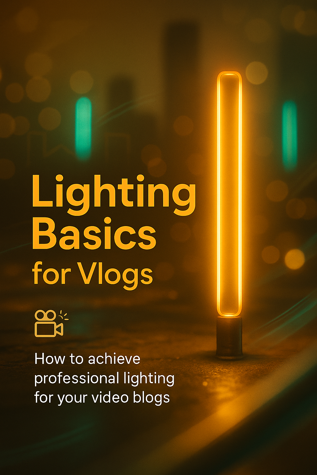 /Collection: /by davooda/Type: PNG/An engaging graphic providing essential tips on achieving professional lighting for video blogs, designed with a modern aesthetic and eye-catching colors to attract content creators.
