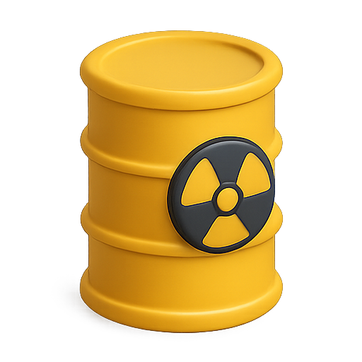 /Collection: /by davooda/Type: PNG/3D illustration of a yellow hazardous waste barrel featuring a radiation symbol, ideal for environmental awareness and safety graphics. Suitable for educational or informational contexts.