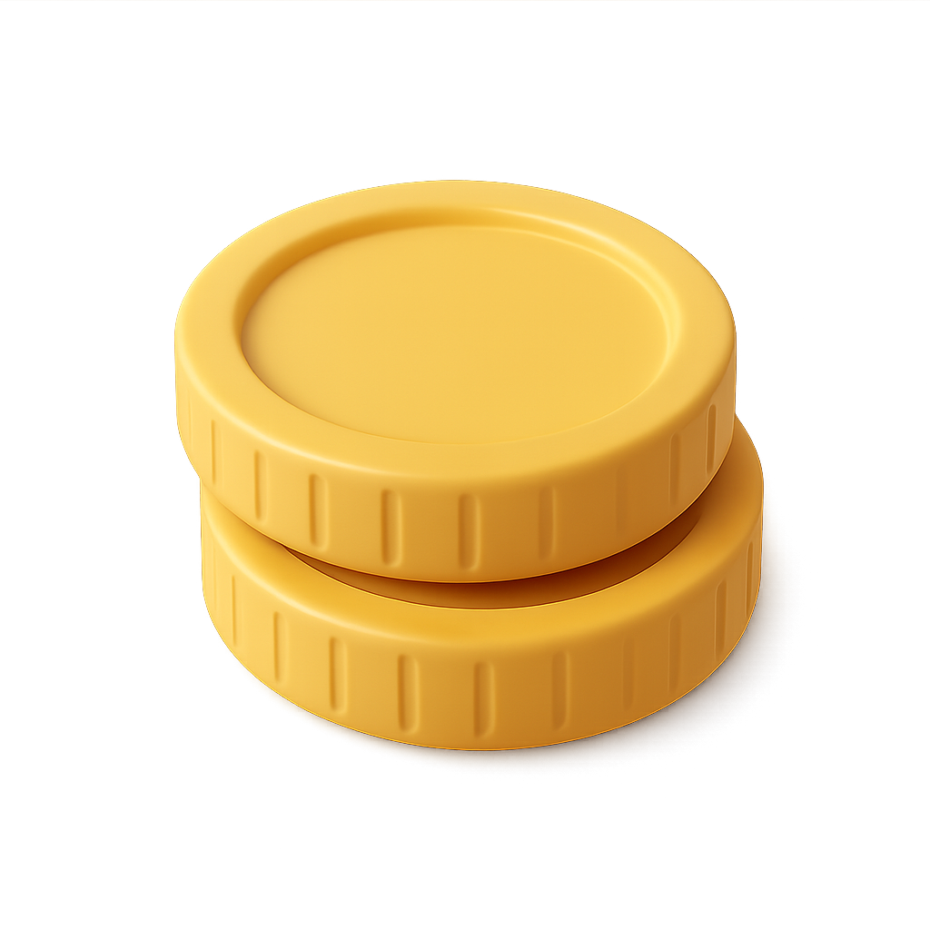 /Collection: /by davooda/Type: PNG/A visually appealing 3D illustration of two stacked coins rendered in a three-quarter view. The coins feature a smooth surface with ribbed edges, creating a volumetric effect.