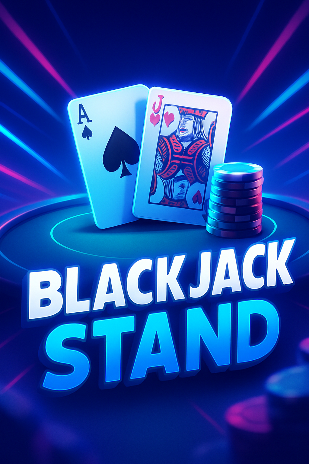 Dynamic Blackjack Stand Illustration with Neon Effects