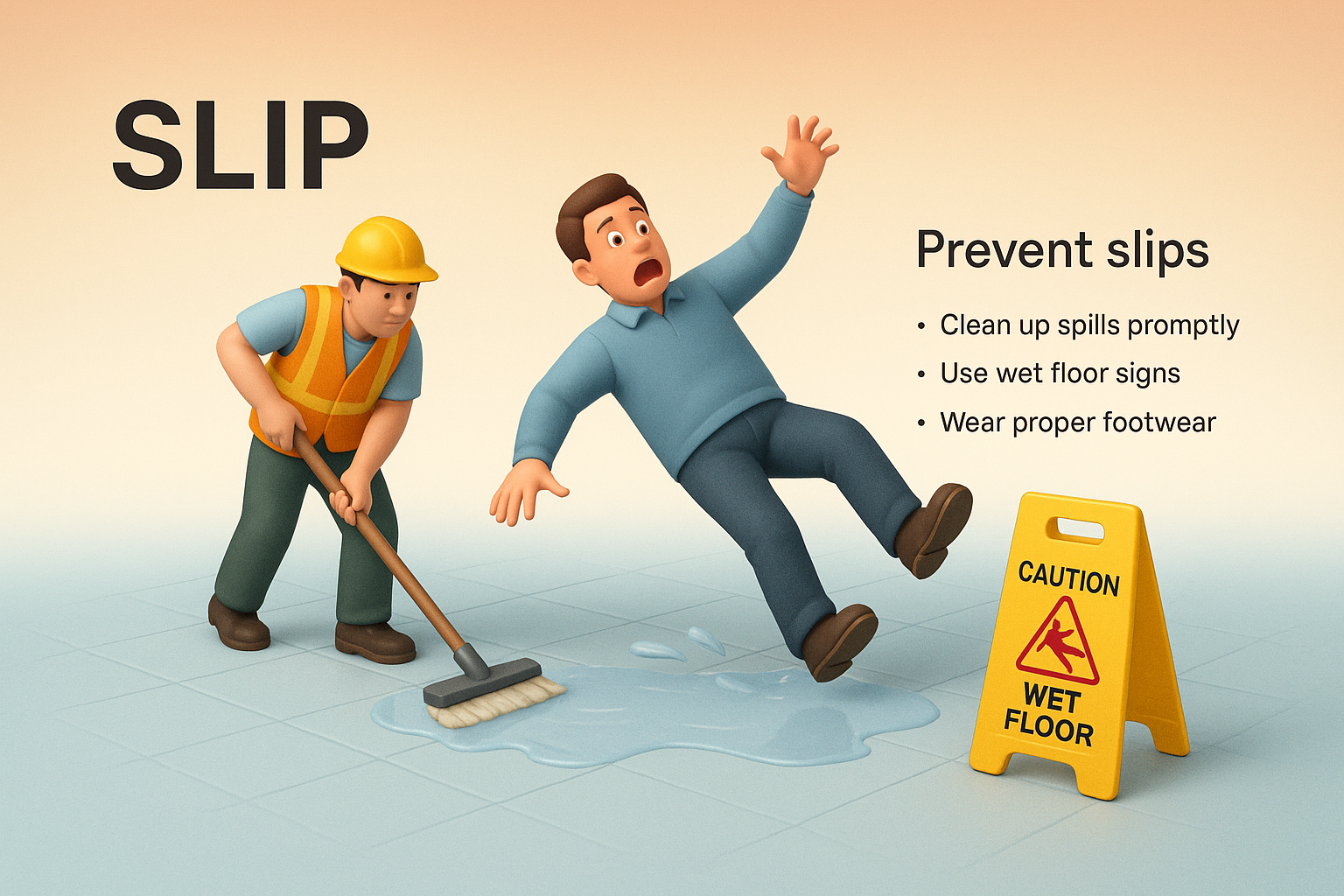 3D Scene Illustrating Slip Prevention Tips in Realistic Style