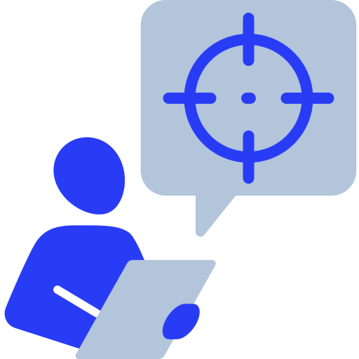 polish-blue simple icon: targeting, assessment, analysis, focus, planning