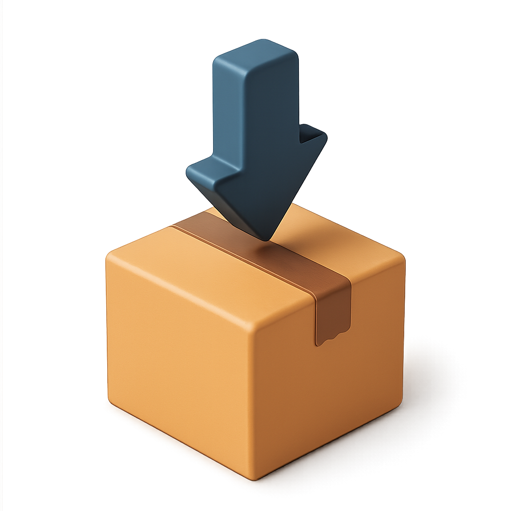 3D Box Icon with Downward Arrow in Isometric View