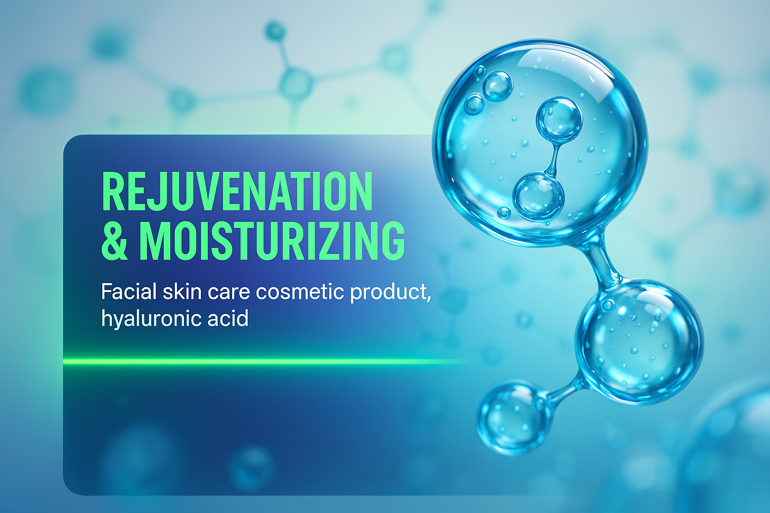Promotional Graphic for Skincare Product Featuring Hyaluronic Acid