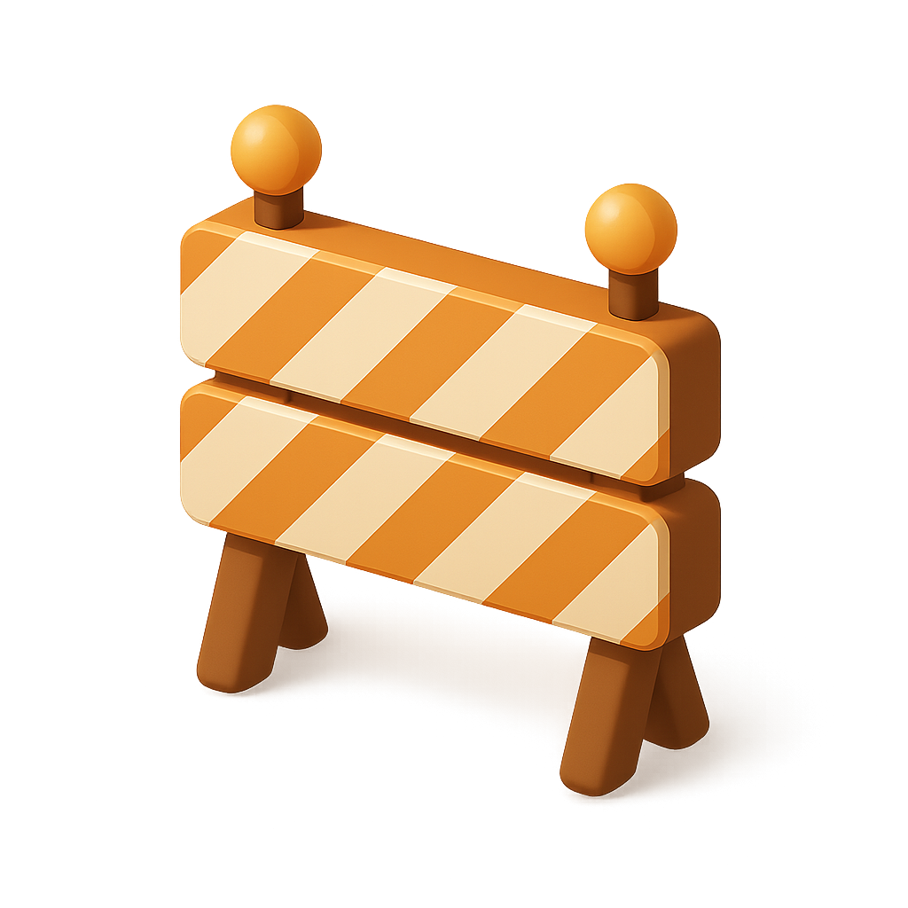 A visually striking 3D icon of a barrier fence, featuring orange and cream stripes with rounded top elements. The design has a three-quarter isometric view and a soft glow effect.