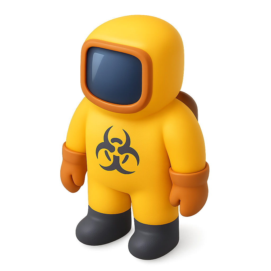 Stylized 3D Hazmat Suit Icon with Biohazard Symbol