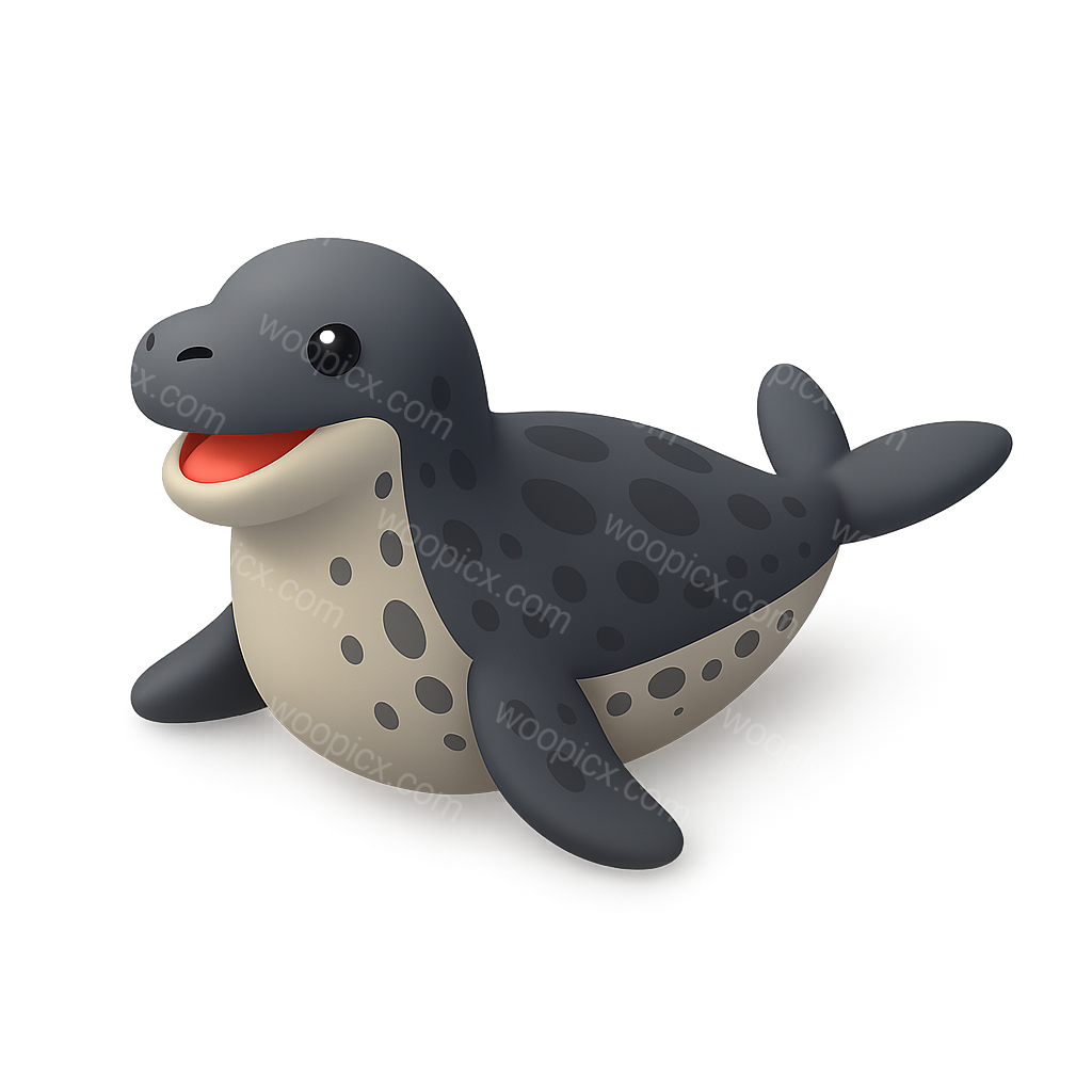 /Premium/Collection: /by davooda/Type: PNG/A charming 3D icon of a leopard seal, depicted in a three-quarter view with a smooth, isometric design. The seal features a playful expression and distinctive spots.