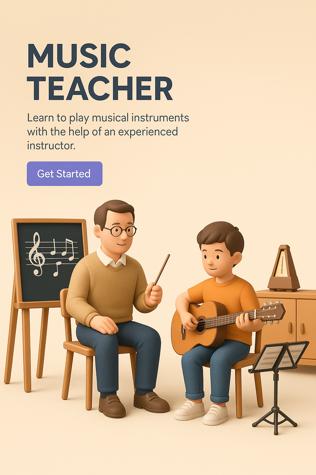 Engaging Music Teacher 3D Illustration for Learning Instruments