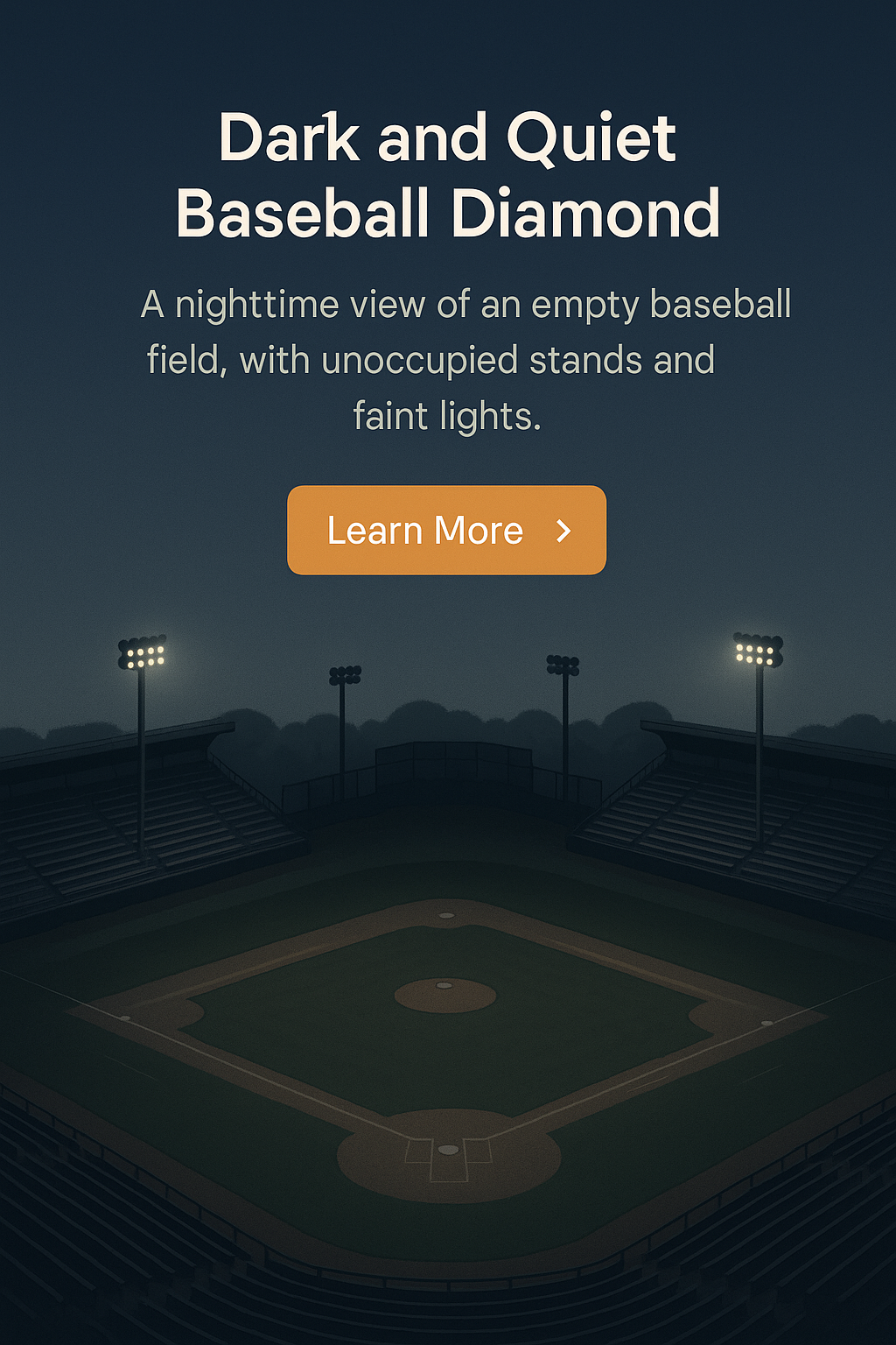 A serene nighttime scene of an empty baseball diamond, featuring unoccupied stands and subtle lighting, creating a calm atmosphere.