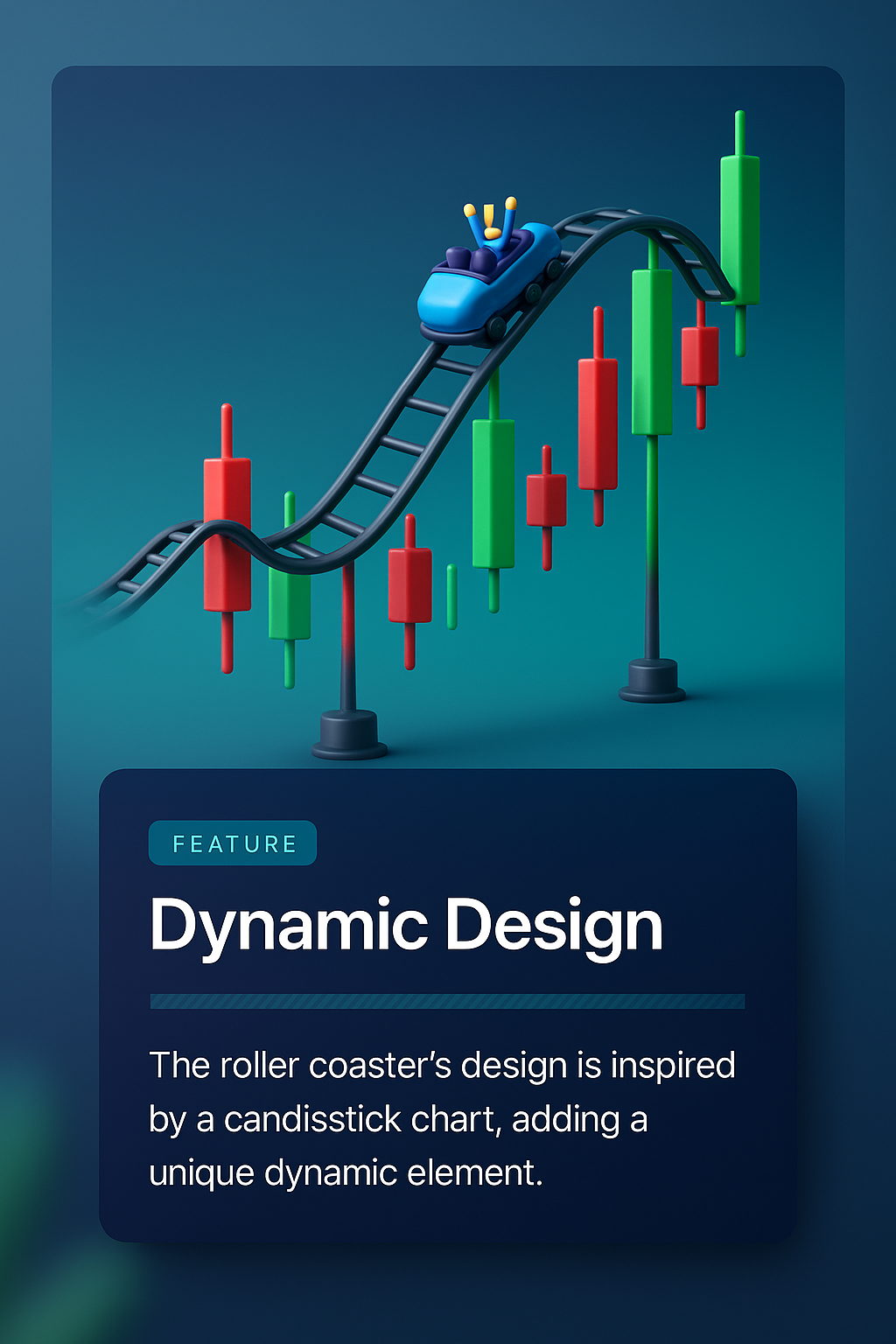 /Collection: /by davooda/Type: PNG/A visually striking 3D illustration of a roller coaster shaped like a candlestick chart, featuring vibrant colors and a dynamic design that captures the viewer's attention.