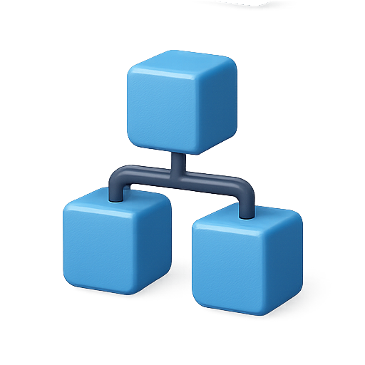 /Collection: /by davooda/Type: PNG/A stylized three-dimensional graphic featuring three blue blocks connected by a dark line. Ideal for illustrating concepts of organization, connectivity, or modularity in design projects.