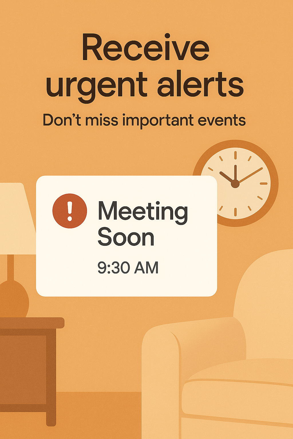 /Collection: /by davooda/Type: PNG/Informative digital graphic designed to notify users about upcoming meetings, featuring a warm color palette and simple design elements suitable for mobile apps or notifications.