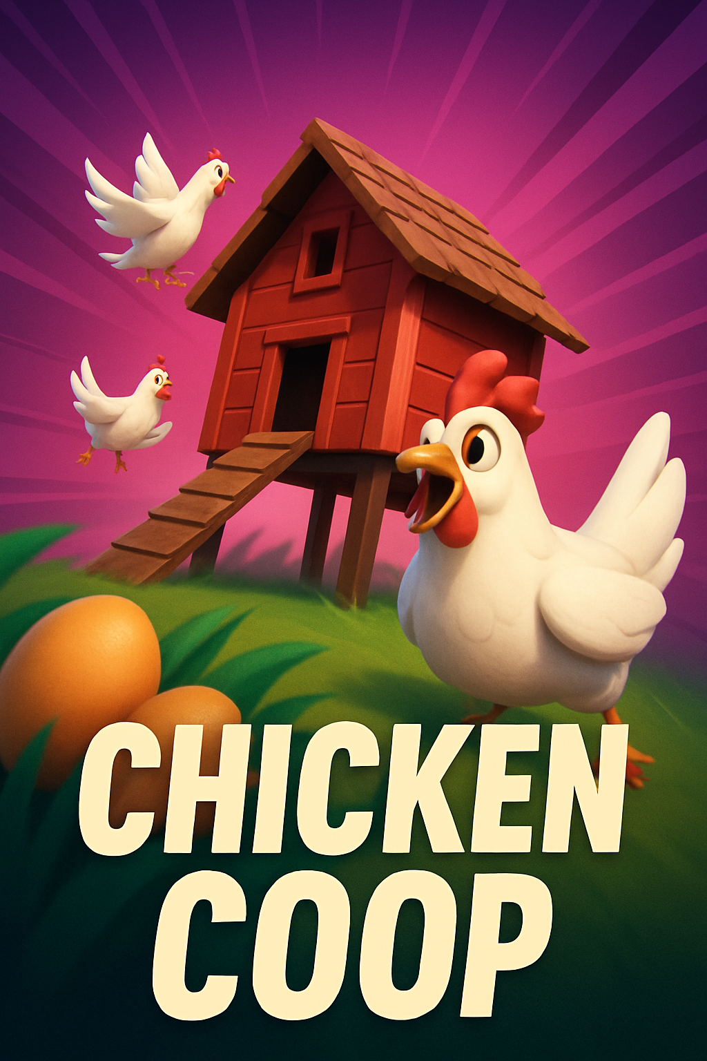 Dynamic Chicken Coop Illustration with Playful Elements