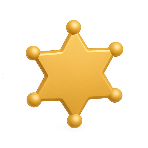 A vibrant golden sheriff star icon, symbolizing law enforcement and authority. Ideal for use in apps, educational materials, or crime-related themes.