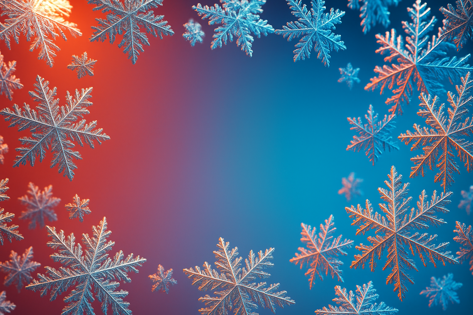 /Collection: /by davooda/Type: PNG/A vibrant winter-themed border featuring intricately designed snowflakes against a smooth gradient background. The scene is illuminated from both sides with contrasting colors, creating a dynamic and engaging visual.