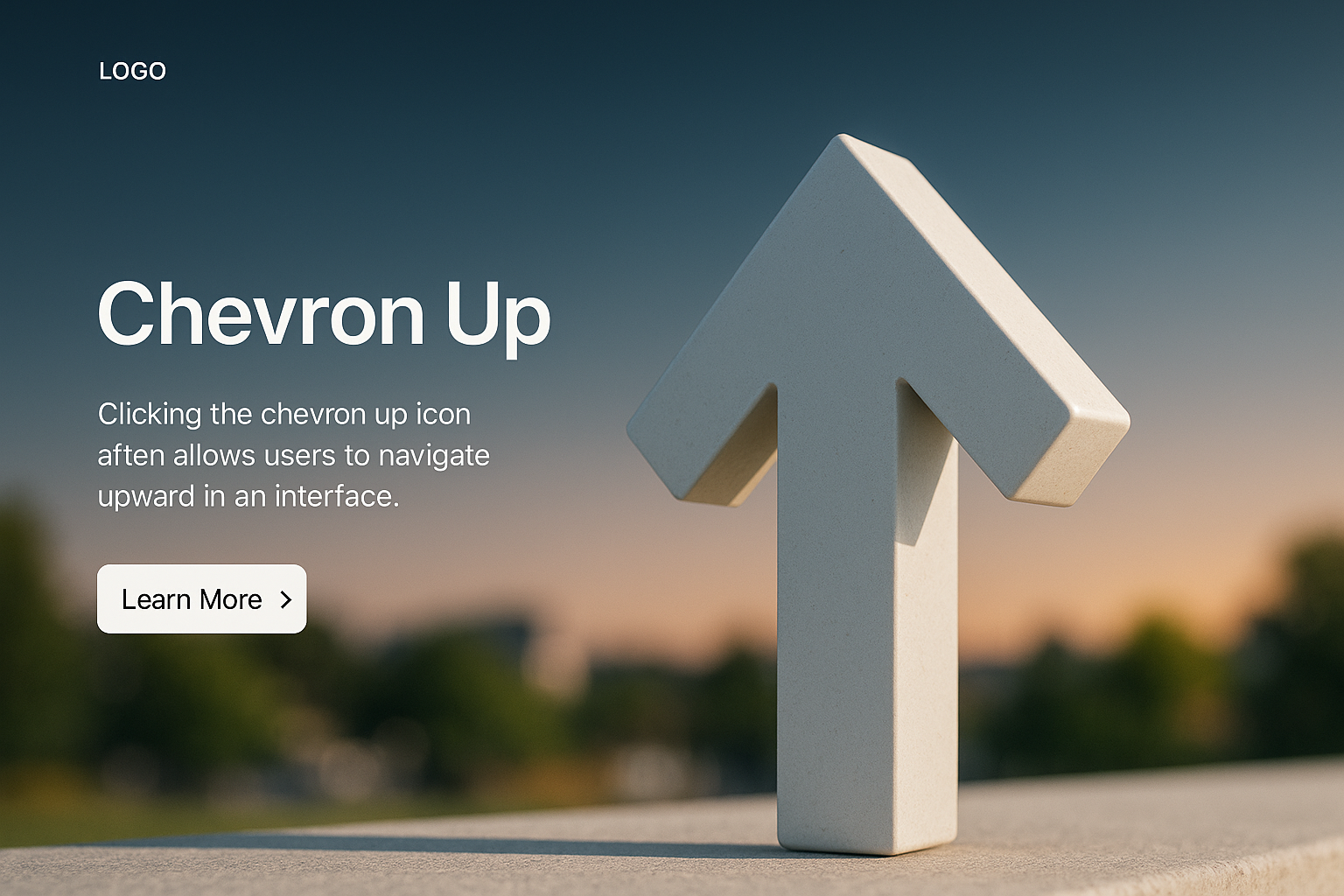 A modern web page design showcasing a prominent chevron up icon with a clean layout. The background features a gradient with a soft focus, enhancing readability.