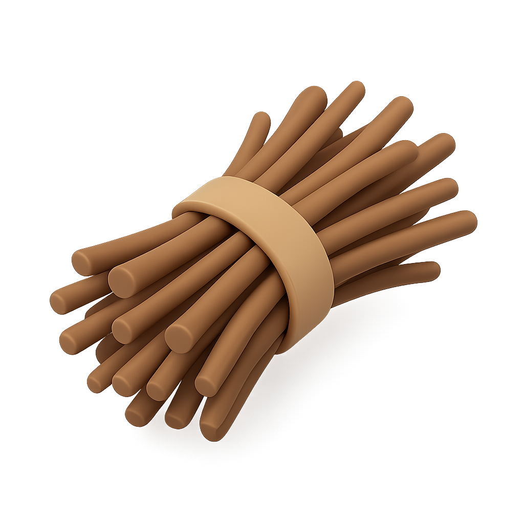 /Collection: /by davooda/Type: PNG/A stylized 3D icon of brushwood, featuring a bundle of sticks bound together, presented in a three-quarter view. The design emphasizes a smooth, volumetric texture against a soft background.