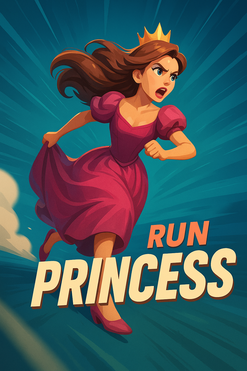 Dynamic Princess Illustration in Motion with Bold Typography