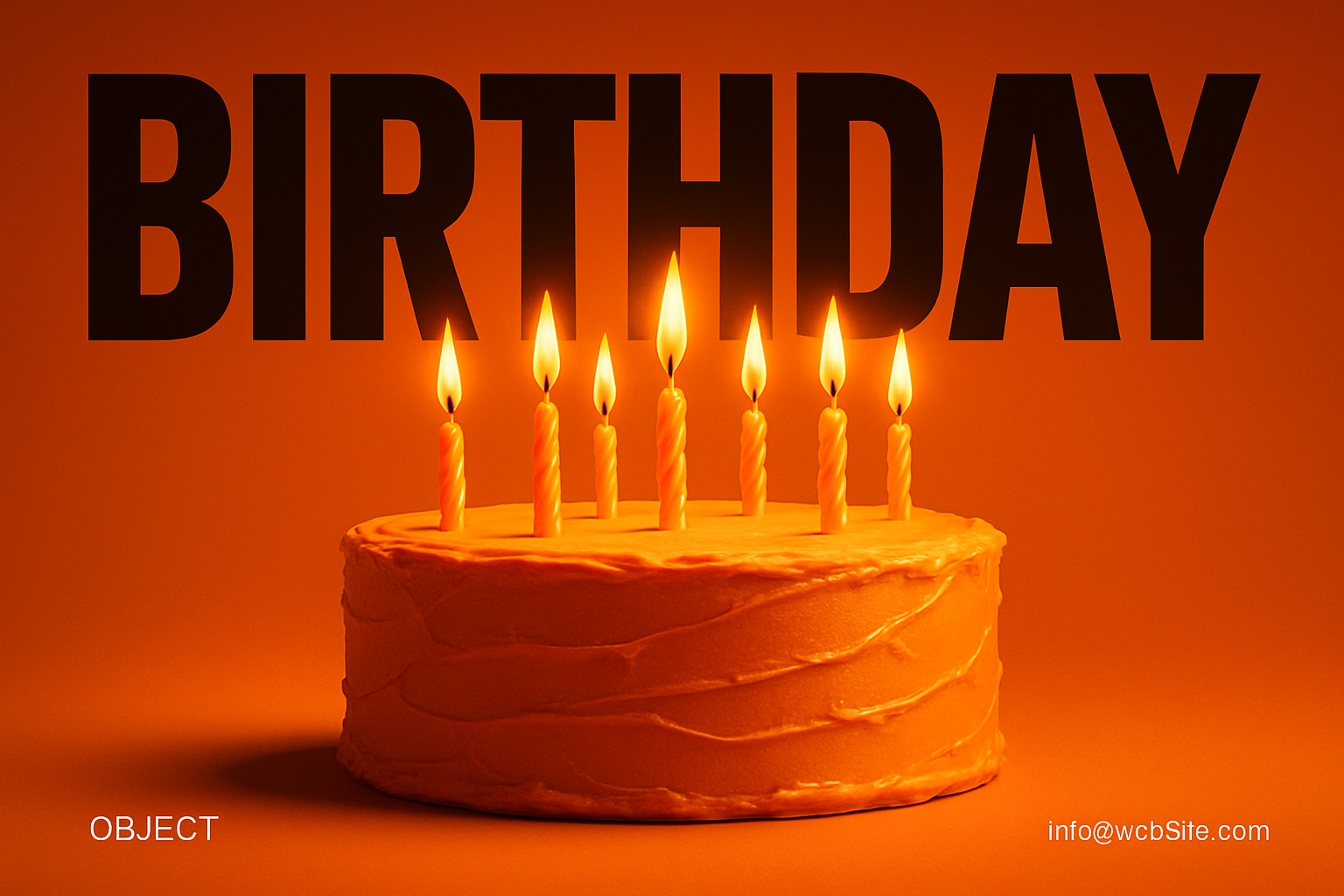 A striking birthday cake featuring lit candles, set against a warm gradient background. The bold headline 'BIRTHDAY' dominates the top, creating a modern and cinematic feel.