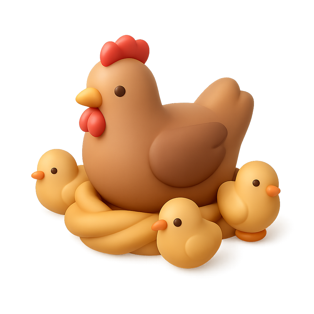 Colorful 3D Brood Icon Featuring Hen and Chicks