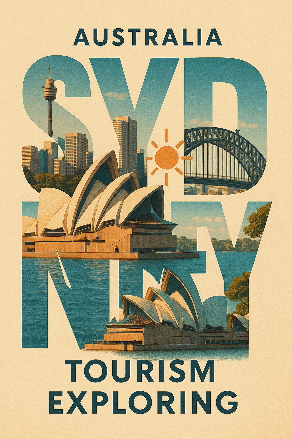Stylized Travel Poster Featuring Sydney and Iconic Landmarks